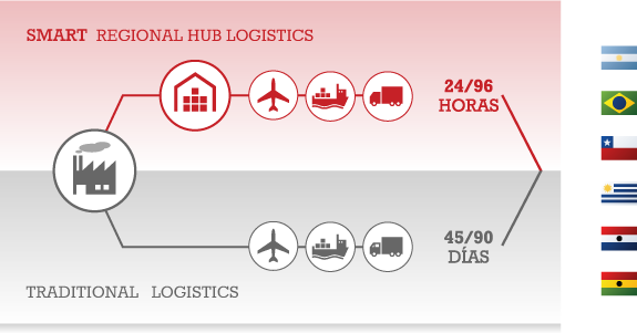 Creando un inventario regional, se reducen los tiempos de entrega, llegando a toda América Latina en menos de 96 horas.